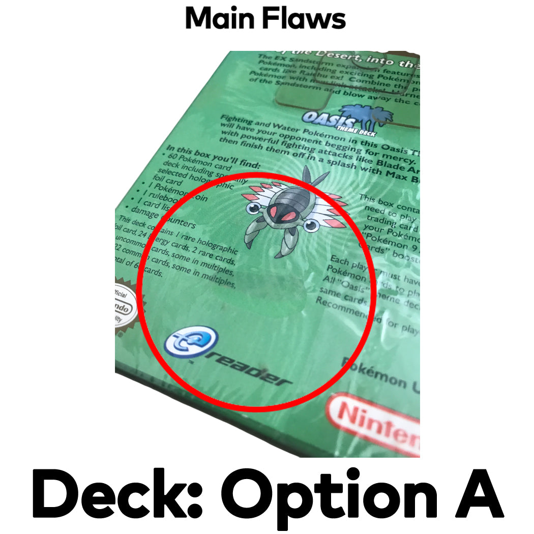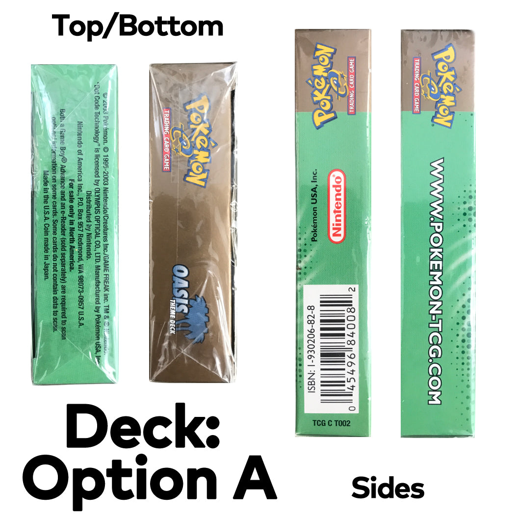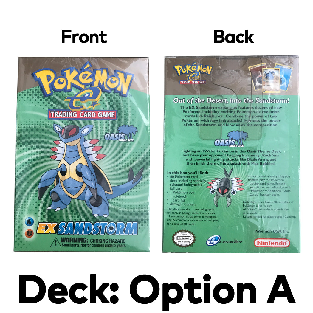 Pokémon Trading Card Game EX Sandstorm Oasis Theme Deck. This was released in 2003. The first photo is a stock photo. The exact deck you receive will depend on the deck option you select when adding to cart.